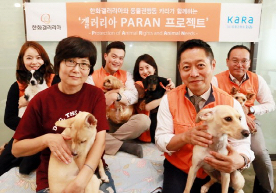 김영훈(사진 오른쪽) 한화갤러리아 기획실장은 9일 반려동물 문화의 사각지대를 찾아 돕는 신규 사회공헌 프로그램 ‘갤러리아 PARAN 프로젝트’의 전개 계획을 밝히며 이같이 말했다. 한화갤러리아는 이 프로젝트를 위해 국내 동물보호단체들인 △동물권행동 카라 △동물권단체 케어 △서울동물학대방지연합 △용인시동물보호협회 등과 잇따라 협약을 체결하고 이달부터 본격적인 활동에 착수했다. 동물보호단체들의 핵심 사업을 후원하고, 한화갤러리아 임직원 중 희망자를 모아 ‘PARAN 봉사단’을 결성, 유기동물 보호소를 방문하는 봉사활동도 진행할 예정이다.