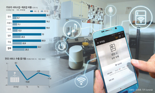 하지만 우리 서비스산업의 경쟁력은 강하지 않다. 미국, 영국 등 주요 선진국은 서비스산업이 경제에서 차지하는 비중이 1990년대에 이미 70%를 넘어서고 현재는 80% 수준에 육박하지만 우리는 아직도 60%를 벗어나지 못하고 있다.