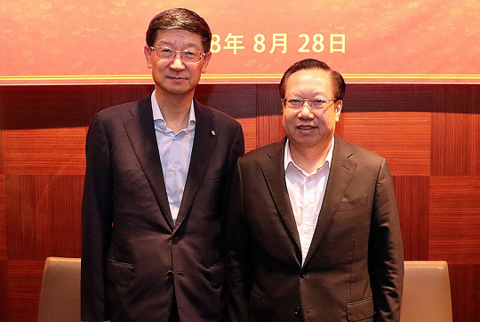 박근태(왼쪽) CJ대한통운 사장 겸 CJ중국 본사 대표는 28일 한국을 찾은 왕샤오둥(王曉東) 중국 후베이(河北) 성장과 서울 중구 장충동 신라호텔에서 물류·농산물 가공 분야에서 상호 협력을 강화해 나가기로 했다.