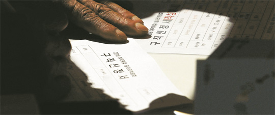4일 서울시 주최로 서울 중구 세종대로 서울광장에서 열린 ‘서울시, 2018 취약계층 일자리 박람회’를 찾은 구직자들이 진지한 표정으로 구직신청서를 쓰고 있다.