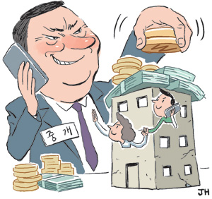 5일 주택 업계에 따르면 집값 상승기를 틈탄 부동산 중개사무소들의 ‘집값 띄우기’ 수법도 갈수록 진화하고 있다. 특히 양도소득세 중과(세금을 무겁게 매기는 것) 등 각종 정부 규제, 오름세가 계속될 거란 전망, 서울 시내 집이 부족하다는 불안 심리가 겹치며 시장에 나오는 매물이 확 줄어들다 보니 중개사무소가 주민들을 부추겨 뛴 가격이 그대로 실거래가로 굳어지고 있다. 중개사무소 입장에서는 거래가가 높을수록 수수료 수입이 늘어나고, 주민 입장에서는 더 높은 가격에 팔 수 있으니 ‘윈윈’인 셈이다.