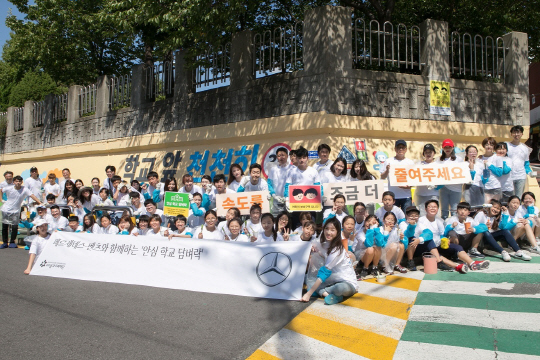 이번 벽화 그리기는 메르세데스-벤츠 코리아 부산지역 딜러사 임직원 50여 명이 참여한 가운데 부산 재송초등학교 인근 통학로 170m 구간에서 실시됐다. 이곳은 주택가, 교회 및 주차장이 인근에 위치해 유동인구가 많고 차량 통행이 빈번한 가운데 코너길 시야 확보가 어렵고 차량 도로와 통학로가 바로 접해 있어 어린이 교통안전 사고 노출에 대한 우려가 있어왔다. ‘안심 학교 담벼락’ 활동은 국내 다임러 계열사 임직원 및 공식 딜러사와 사회복지법인 아이들과미래재단이 함께하는 스쿨존 교통안전 캠페인이다.