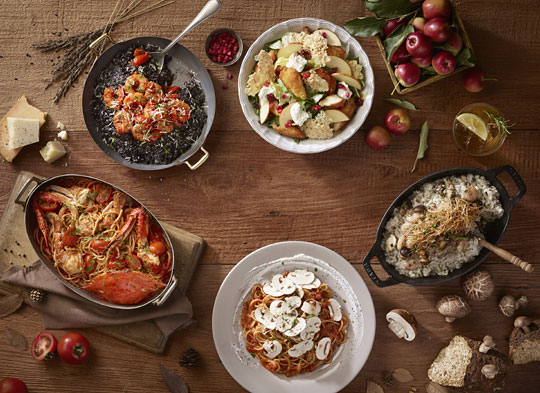 라그릴리아는 가을 제철 과일인 사과, 프랑스식 디저트인 현미치즈 튀일(Tuile), 새콤한 석류드레싱으로 맛을 낸 ‘사과&석류 샐러드(1만3900원)’, 살이 꽉 찬 태안 꽃게와 대파 오일로 달큰한 향을 더한 ‘태안 꽃게 스파게티(1만9500원)’ ‘흑미 먹물 리조또(1만6500원)’ 등 가을 식재료로 맛을 살린 메뉴를 선보인다.