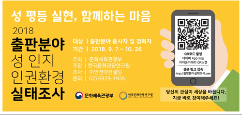 실태조사는 문체부(www.mcst.go.kr)와 한국출판문화산업진흥원(www.kpipa.or.kr)의 홈페이지와 웹페이지(http://출판분야실태조사.com)를 통해 온라인으로 진행된다. 정규직·비정규직, 프리랜서(외주노동자) 등 출판 분야 모든 종사자와 현재 출판 분야에서 일하지 않더라도 근무한 경력이 있는 사람이라면 누구나 조사에 참여할 수 있다. 문체부 정책 담당자는 “이번 조사는 온라인으로 진행되는 만큼 조사 대상자들의 적극적인 참여가 필요하다”고 밝혔다. 이번 실태조사는 미투운동을 통해 불거진 문화예술계의 성 인지 인권 환경을 파악하고 개선안을 마련해 나가기 위한 분야별 조사의 일환이다. 이번 조사에는 출판 분야 성희롱과 성폭력 실태, 성 인지, 성 편견 등에 대한 설문이 포함된다.