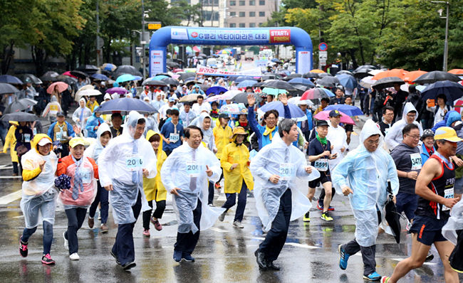 5일 서울 구로구 마리오타워 광장에서 열린 제16회 G밸리 넥타이마라톤대회에서 넥타이를 맨 참가자들이 힘차게 출발하고 있다. 구로디지털단지를 알리기 위해 2003년 시작된 넥타이마라톤 대회는 올해로 16회째를 맞고 있다.