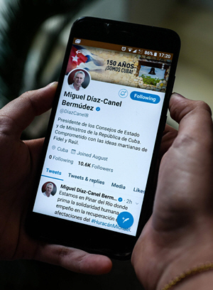 미겔 디아스카넬(58) 쿠바 국가평의회 의장이 쿠바 지도자 최초로 트위터 정치에 동참했다. 첫 트위트로는 쿠바인으로서의 애국심을 강조하는 글을 올렸다.