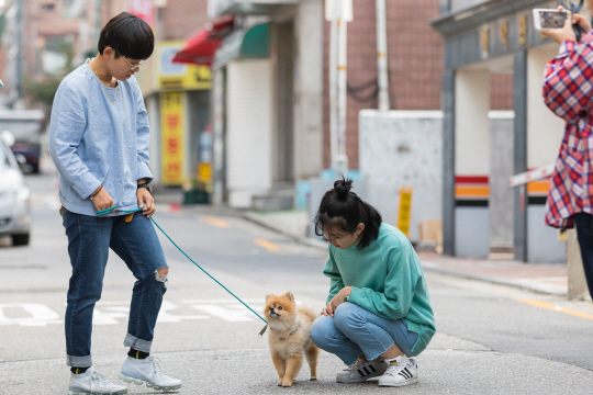 이어 A 씨와 반려견은 집 밖으로 나가 야외 산책 훈련(사진)을 함께했다. 동행한 훈련사가 A 씨에게 목줄의 길이를 조절하는 방법, 걷는 속도, 사람의 손 감각에 적응시키는 방법 등을 일러주며 1㎞ 남짓을 걷는 것으로 훈련을 마무리했다.