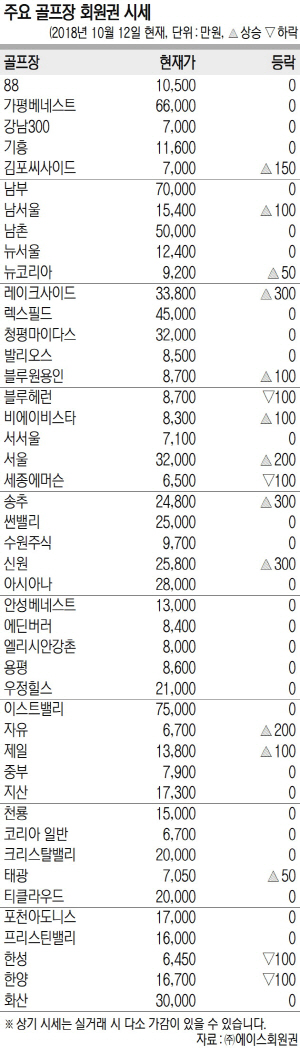 고가권은 혼조세 양상으로 서울이 반등에 성공했으나 한양은 소폭 하락했다. 중가권은 남서울, 뉴코리아를 비롯해 외곽권의 비에이비스타와 블루원용인까지 상승 종목들이 증가했다.