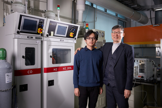 울산과학기술원(UNIST) 백종범(사진 오른쪽) 교수팀이 백금 가격의 4%에 해당하는 고효율의 새로운 물분해 촉매 물질을 개발했다. ‘루테늄엣그래핀’으로 불리는 이 물질은 현재 상용화된 백금 촉매를 능가하는 성능을 갖추고, 반영구적으로 사용 가능한 내구성도 지녀 백금 촉매를 대체할 차세대 촉매로서 가능성을 주목받고 있다.