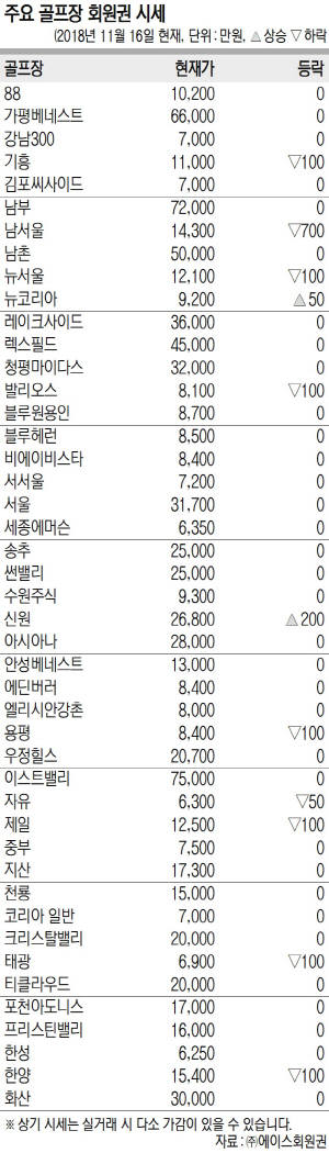 ‘골프 8학군’ 고가권 강세[회원권 핫이슈]
