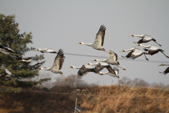 19일 강원 철원군 철원평야 상공을 천연기념물 제203호 재두루미가 날고 있다.