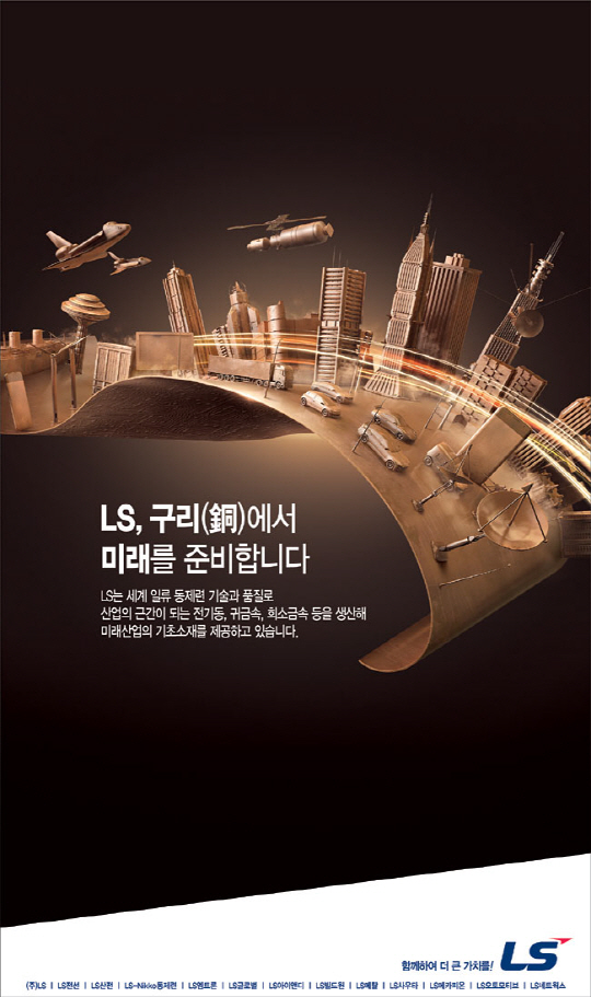 LS의 이번 광고(사진)는 일반인들이 피부로 접하기는 힘들지만 우리 인간의 삶을 풍요롭게 만들고 산업 발전의 든든한 기반이 되는 LS의 사업 영역을 일반 독자층에게 쉽고 친근하게 알리기 위해 제작됐습니다.