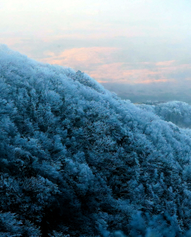 절기상 첫눈이 온다는 소설(小雪)인 22일 제주 한라산 영실 탐방로 선작지왓 나무에 ‘나무서리’인 상고대가 피어나 눈이 온 것 같은 풍경을 연출하고 있다.