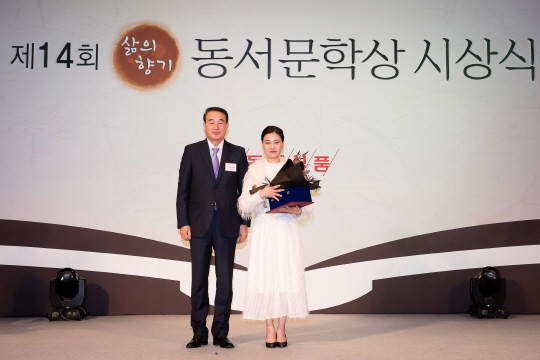 “친정이 생긴 것처럼 든든합니다. 저처럼 어려움 속에서도 글을 쓰고자 하는 분들을 돕고 싶습니다.” 여성들의 문학 활동을 지원하는 동서식품 ‘제14회 삶의 향기 동서문학상’ 대상을 받은 이은정(사진 오른쪽) 작가는 22일 이같이 소감을 전했다.