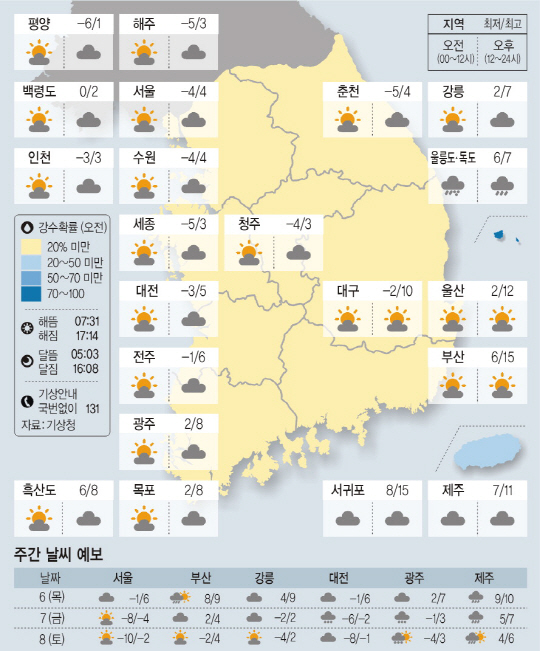 [날씨이야기] 2월7일 토요일, 2월8일 일요일
