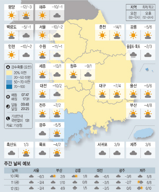 <날씨이야기>1월9일 수요일(음력 12월4일)