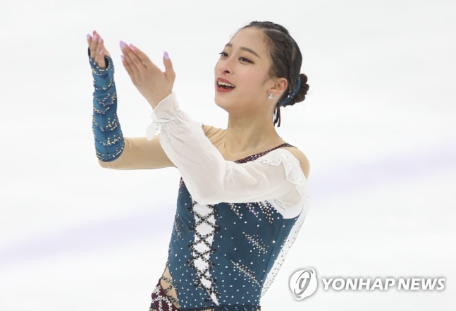 유영(과천중)이 13일 오후 서울 양천구 목동아이스링크에서 열린 ‘KB금융 코리아피겨스케이팅 챔피언십 2019’ 여자 싱글 프리스케이팅에서 연기를 펼친 뒤 관중을 향해 손키스를 날리고 있다.