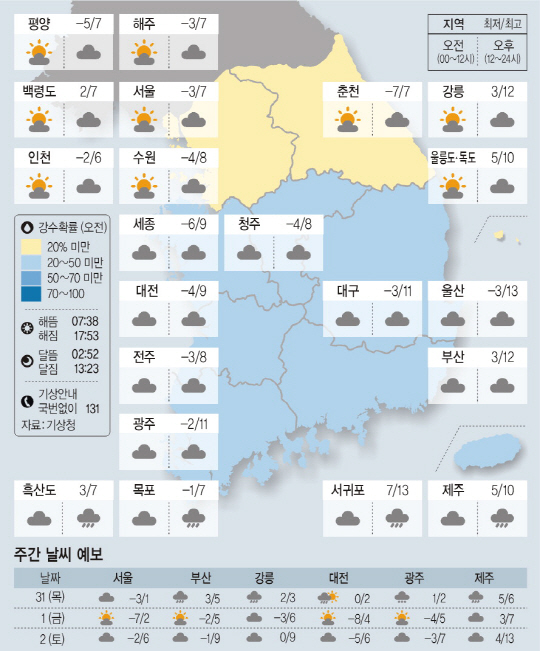 [날씨이야기] 3월5일 목요일(음력 1월17일)