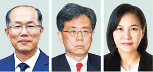 문재인 대통령은 28일 국가안보실 1차장에 김유근(62·왼쪽 사진) 국방부 주한미군기지이전사업단장, 2차장에 김현종(60·가운데) 산업통상자원부 통상교섭본부장 등을 임명하는 인사를 단행했다. 산업부 통상교섭본부장에는 유명희(52·오른쪽) 산업부 통상교섭실장을 임명했다. 김의겸 청와대 대변인은 이날 서면 브리핑을 통해 이 같은 인선 결과를 발표했다.