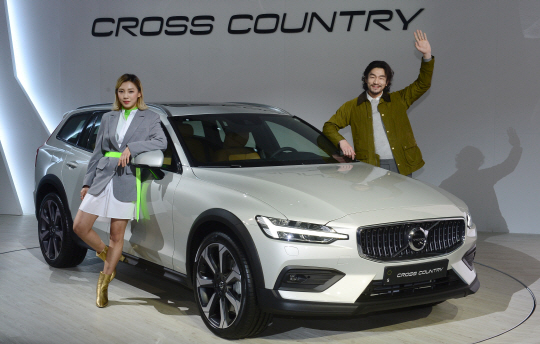 볼보자동차코리아가 5일 서울 중구 을지로 동대문디자인플라자에서 진행한 신형 ‘크로스컨트리 V60’ 출시 행사에서 모델들이 포즈를 취하고 있다. 크로스컨트리 V60은 세단과 SUV의 장점을 결합한 크로스오버 차량으로 이날 아시아에서 최초로 공개하고 판매에 들어갔다.