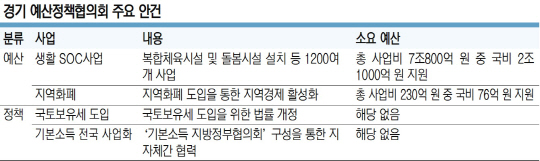 경기도는 지역 경제 활성화를 위한 지역화폐 사업 예산 230억 원 가운데 76억 원의 국비 지원(도비 82억 원, 시·군비 72억 원)을 요청했다. 또 1200여 개, 사업비 7조800억 원 규모의 생활형 SOC 사업 추진을 위해 국비 예산 2조1289억 원 지원도 요청했다.