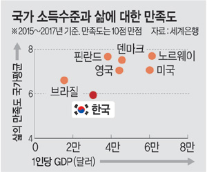 지난해 한국의 1인당 국민총소득(GNI)이 처음으로 3만 달러를 돌파한 가운데, 국가 경제적 수준에 비해 한국인의 삶에 대한 만족도와 질이 크게 떨어진다는 주한 외국인 교수의 보고서가 나왔다.