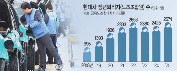 19일 자동차업계에 따르면 현대차 경영진은 2016년 폭스바겐의 협약을 벤치마킹해 생산직 근로자 자연감소를 통한 이른바 ‘제3의 구조조정’을 추진하고 있다. 생산직 근로자 가운데 1950년대 후반에서 1960년대 초·중반 출생한 이른바 ‘베이비 부머’들이 대거 정년퇴직하고 있기 때문이다. 현대차 경영진은 생산직 정년퇴직 인력에 대한 대체(代替) 채용은 하지 않는 방안을 추진하고 있는 것으로 파악됐다. 폭스바겐 노사가 경영상 해고를 하지 않는 대신, 자연 감소와 노동자 재교육, 전환배치로 일자리 감소에 대응키로 한 것과 유사하다.