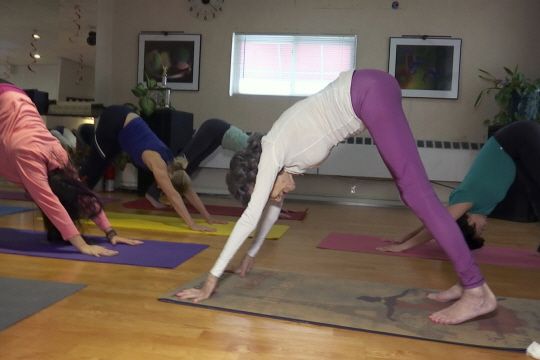 100세로 세계 최고령 요가 강사로 꼽히는 타오 포촌-린치(오른쪽)가 지난 5일 미국 뉴욕주 하츠데일에서 요가를 가르치고 있다.