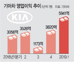 현대자동차에 이어 기아자동차도 올해 1분기 호실적을 거뒀다. 기아자동차는 올해 1분기 지난해 같은 기간보다 94.4% 증가한 5941억 원의 영업실적을 올렸다고 25일 공시했다. 매출액은 0.9% 떨어진 12조 4444억 원, 경상이익은 83.9% 오른 9447억 원, 당기순이익은 50.3% 오른 6491억 원을 각각 기록했다. 기아차 관계자는 “국내 등 일부 지역 판매 감소와 레저차량(RV) 주력 모델 노후화로 인해 매출액은 소폭 줄어들었으나, 판매단가 상승, 북미 수익성 개선 및 통상임금 소송 충당금 환입 등에 따른 매출원가 감소로 영업이익은 크게 늘었다”고 밝혔다.