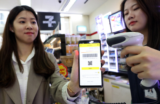 2일 서울 중구 세븐일레븐 소공점에서 한 소비자가 간편결제시스템 ‘제로페이’를 이용해 결제를 하고 있다. 서울시와 중소벤처기업부는 이날부터 GS25, CU, 세븐일레븐, 이마트24, 미니스톱 등 편의점에서 제로페이 서비스를 본격 시행했다.