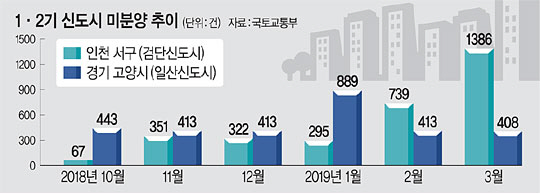 인천 검단은 지난해 같은 인천권이면서 서울과의 접근성이 더 우수한 계양이 3기 신도시로 지정된 데 이어 계양과 거의 붙어 있는 부천 대장까지 추가되자 주민들 사이에서 “사망선고를 받았다”는 탄식까지 나오고 있다. ‘한신더휴’, ‘센트럴푸르지오’ 등 올 초 검단 내 분양 단지들은 1순위 청약에서 대거 미달됐다. 지난해 10월만 해도 67건에 불과했던 미분양은 올 2월 739건으로 늘어났고 3월에는 1386건까지 치솟았다.