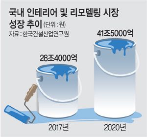한국건설산업연구원에 따르면 국내 인테리어·리모델링 시장(건축자재·가구·시공 등 포함)은 2017년 28조4000억 원에서 2020년 41조5000억 원으로 큰 폭으로 성장할 것으로 전망됐다. 전국적으로 낡은 주택이 늘어나면서 주택 수리 수요가 늘어난 데다 워라밸과‘소확행’(소소하지만 확실한 행복), ‘가성비’(가격 대비 성능)를 선호하는 젊은 층의 인테리어 수요가 늘고 있어서다.