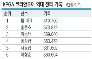 세계 최장타자 팀 버크(33·미국)가 400야드를 넘는 초장타를 날리며 한국프로골프(KPGA)코리안투어 역대 최장타 기록을 갈아치웠다.