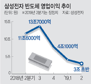 증권가 분석에 따르면 삼성전자 반도체 부문 2분기 잠정 영업이익은 3조 원대 초반으로, 전체 잠정 영업이익(6조5000억 원)의 절반에도 미치지 못한다.