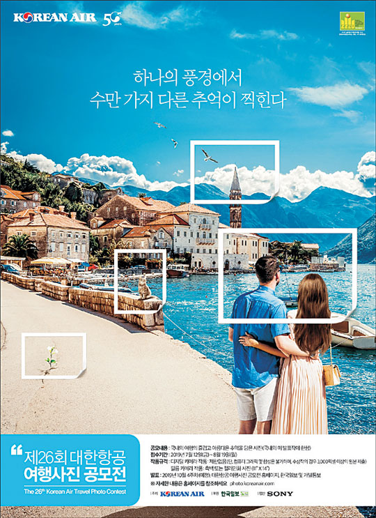 ‘일반 부문’에서는 여행의 즐겁고 아름다운 추억을 주제로 보는 이로 하여금 그곳에 가고 싶은 마음을 자아내게 하는 작품을 공모하며 ‘특별 부문(Go Beyond상)’에서는 올해부터 추가되는 VR 360도 이미지를 포함 항공, 수중 촬영 등을 통해 여행지에서의 도전과 추억을 색다른 시각으로 담은 작품을 공모한다. 작품 접수는 여행사진 공모전 홈페이지(http://photo.koreanair.com)에 이미지 파일을 등록하면 되고, 필름 인화 작품은 우편과 방문을 통해 제출 가능하다. 전문심사위원단이 응모작 가운데 대상 1명, 금상 1명, 은상 2명, 동상 6명, 입선 50명, 특별상 5명 등 총 65점을 선정한다. 대상 1명에게 국제선·국내선 프레스티지석 왕복 항공권과 상품(카메라)을 증정하고, 수상자들에게는 상패와 항공권 등을 수여한다.