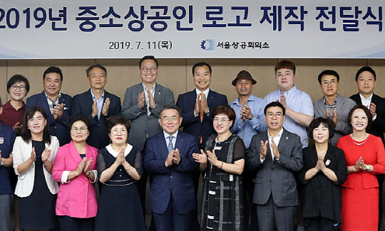 서울상공회의소는 11일 서울 중구 남대문로 상의회관에서 김준동(앞줄 오른쪽 다섯 번째) 서울상의 부회장이 참석한 가운데 ‘중소상공인 로고 제작 전달식’을 개최했다.