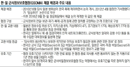 먼저 전문가들은 지소미아 파기가 일본에 일방적으로 유리하다는 일부 주장은 맞지 않다고 보고 있다. 박휘락 국민대 교수는 “한·미·일의 여러 소스에서 검증된 정보 교환을 통해 유사시 북한 핵·미사일의 정확한 정보를 교환하는 것이 핵심으로, 지소미아가 일본에 은혜를 베풀거나 한국의 주권이 훼손되는 것과는 전혀 무관하다”고 말했다. 박 교수는 오히려 “북한 핵·미사일의 직접적 위협을 받는 한국은 지소미아 폐기로 북핵 정보 공유가 늦어지는 등 가장 큰 불이익을 받을 수 있다”고 우려했다. 일본이 정보수집 위성 5기와 이지스함 6척, 지상 레이더 4기, 조기경보기 17대, 해상초계기 77대 등 고급 정보자산을 통해 얻은 영상정보 등을 한국에 제공하는 것을 끊으면 당장 한국의 대북 감시 및 정보 획득이 어렵다는 지적이다.