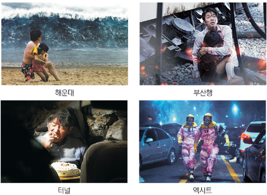 2016년에는 재난 영화 두 편이 2000 만 명에 육박하는 관객을 합작했다. 좀비 바이러스로 인한 국가 마비 사태를 그린 ‘부산행’(1156만 명)과 터널 붕괴 사고로 고립된 인간의 사투를 다룬 ‘터널’(712만 명)이 불과 3주 차로 개봉돼 연타석 홈런을 터뜨렸다. 2014∼2015년에는 2014년 발생한 세월호 참사의 여파로 재난을 소재로 다룬 영화 제작을 꺼렸다는 것이 업계 관계자들의 설명이다.