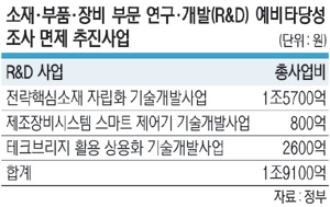 정부는 앞서 일본 수출규제에 대응하기 위해 6조 원에 달하는 소재·부품·장비 R&D 사업의 예비타당성 조사를 면제키로 했는데, 이 가운데 시급성이 높은 사업을 골라 1차로 추진하는 것이다. 예비타당성 조사는 해당 사업이 경제성 등을 갖추고 있는지 판단하기 위한 절차다. 이를 통과해야 R&D에 착수할 수 있어 면제 시 국산화 속도를 앞당기는 효과가 있다.
