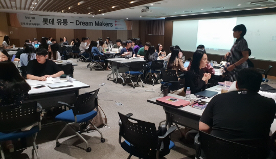 지난 4월 선발된 ‘유통Dream 메이커스’ 1기 60명에게는 지금까지 유통 현직 전문가들의 실무 교육과 취업컨설팅을 제공하고 있으며, 이외에 롯데마트 김포 온라인센터와 본사, 점포 견학 및 실습 기회도 주어졌다.