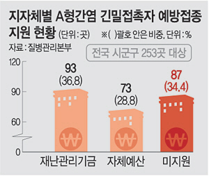 예방접종을 지원하는 지자체들도 지원 방식이 제각각이었다. 서울과 인천, 대전, 경북, 세종 등은 모든 기초지자체가 재난관리기금을 활용해 A형간염 예방접종을 지원하고 부산과 충남, 제주 등은 기금이 아닌 자체 예산을 확보해 지원하고 있는 것으로 나타났다. 울산과 전북은 모든 지자체에서 아무런 지원이 없고 경기, 강원, 충북 등은 기초지자체별로 지원 여부가 달랐다.