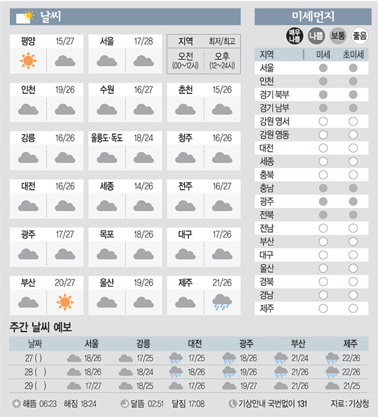 <날씨이야기>9월26일 목요일(음력 8월28일)