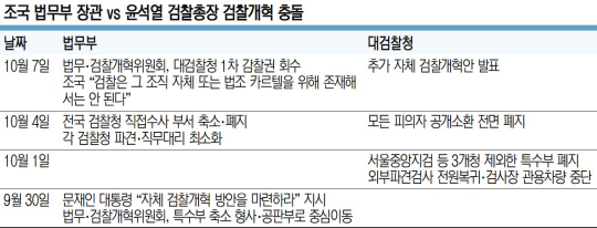 이 같은 갈등 속에 검찰 내부에선 검찰의 준사법적 기능과 관련해 위헌 또는 검찰청법 등 상위 법률 위반 등의 논란이 있을 것으로 예상된다. 검찰 관계자는 “조 장관이 감찰권을 행사하면 검찰과 법무부의 전쟁이 시작될 수밖에 없다”고 말했다.