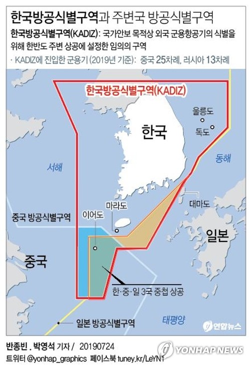 중국, 러시아의 한국방공식별구역 침범은 근년 들어 반복적으로 이뤄지고 있다.