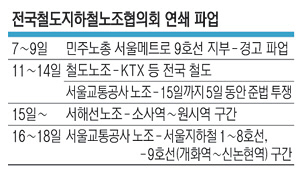 이와 달리 수도권 전철에는 서울교통공사 노조의 준법 투쟁 여파가 이날 오전까진 크진 않았다. 하지만 해당 노조가 오는 16일부터 총파업에 나서면 큰 혼란이 빚어질 것으로 우려되고 있다. 종로3가역에서 열차를 이용하던 조순석(63) 씨는 “평소보다 차량수가 줄어든 것 같기는 하지만 크게 불편하진 않은 것 같다”면서 “총파업을 하게 되면 가뜩이나 붐비는 곳이라 전철 이용이 힘들어질 것 같아 걱정스럽다”고 말했다.