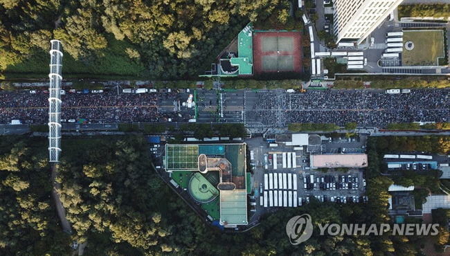 주최 측은 이날 “공식적인 참석 인원을 일절 밝히지 않을 것”이라며 “다만 누에다리에서 예술의 전당까지 1.7㎞, 서리풀터널에서 교대역 사거리까지 1.6㎞ 구간 도로가 꽉 찼다”고 주장했다.