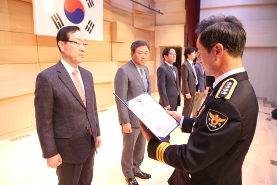 한국유나이티드제약은 김태식(사진 왼쪽) 전무가 지난 21일 ‘제74주년 경찰의 날’을 맞아 행정안전부 장관 표창장을 수상했다고 23일 밝혔다. 한국유나이티드제약은 김 전무가 올해로 13년째 서울 강남경찰서 보안자문협의회 회장을 맡고 있으며, 평소 경찰을 이해하고 적극 협조하는 등 기여한 공을 인정받았다고 덧붙였다.