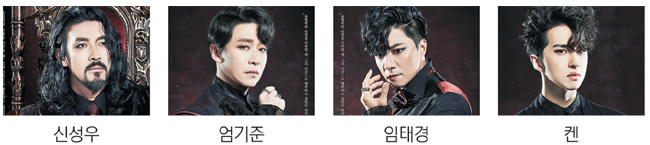 뮤지컬 ‘드라큘라’는 주역 배우 4명의 개성을 만날 수 있는 즐거움을 준다. 신성우, 엄기준, 임태경, 켄. 한국 뮤지컬을 대표하는 이들은 이 뮤지컬의 주인공 역을 함께 맡아 각자 색깔을 뚜렷하게 드러내고 있다.