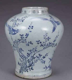 이화여대박물관의 ‘백자 청화매조죽문 항아리(白磁 靑畵梅鳥竹文 壺·사진)’가 보물이 된다. 문화재청(청장 정재숙)은 ‘백자 청화매조죽문 항아리’ 등 조선 시대 도자기와 전적 2건을 29일 보물로 지정 예고했다.