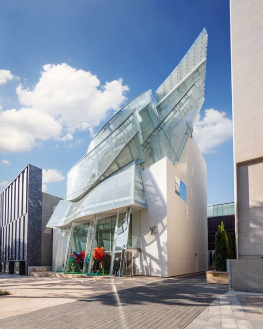 세계적인 건축가 프랑크 게리가 설계하고 쌍용건설이 시공한 루이비통 메종 서울은 지하 1층~지상 4층 규모로 전면에는 유선형 유리 블록을 쌓아 부산 동래학춤에 등장하는 학이 내려앉은 듯한 모습을 형상화했다. 또 외관 전체에 경기 수원 화성의 설계 방식에서 얻은 영감을 적용해 한국적이면서도 이국적인 아름다움을 동시에 표현했다.